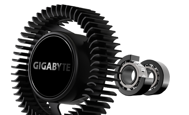 Sistem de racire TURBO GIGABYTE TURBO este ideal pentru carduri multi-grafice intr-un un sasiu cu spatiu limitat. Capacul metalic cu designul indentat si ventilatorul de 80 mm permite un flux de aer mai mare. Cu un GPU cu atingere directa a camerei de vapori, radiator de cupru, conducta de caldura si ventilator de suflare, asigura o mai buna disipare a caldurii.