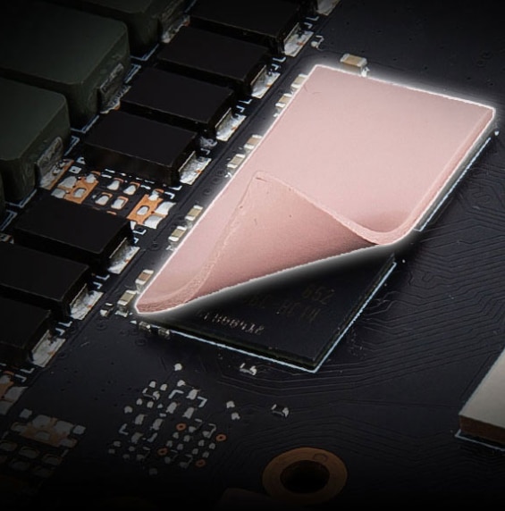 Captusire termica Un numar amplu de pad-uri termice sunt permit diferitelor componente ale placii pentru a transfera caldura direct catre radiator. | ![]() | |||