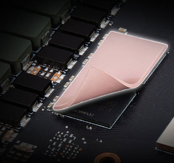 Captusire termica Un numar amplu de pad-uri termice sunt permit diferitelor componente ale placii pentru a transfera caldura direct catre radiator. | ![]() | |||