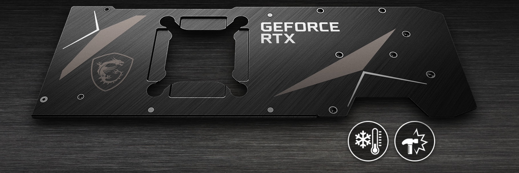 AI SPATELE ASIGURAT O placa spate robusta din aluminiu periat intareste intreaga lungime a placii grafice, asigurand in acelasi timp o racire pasiva prin aplicarea de placute termice. | ||||