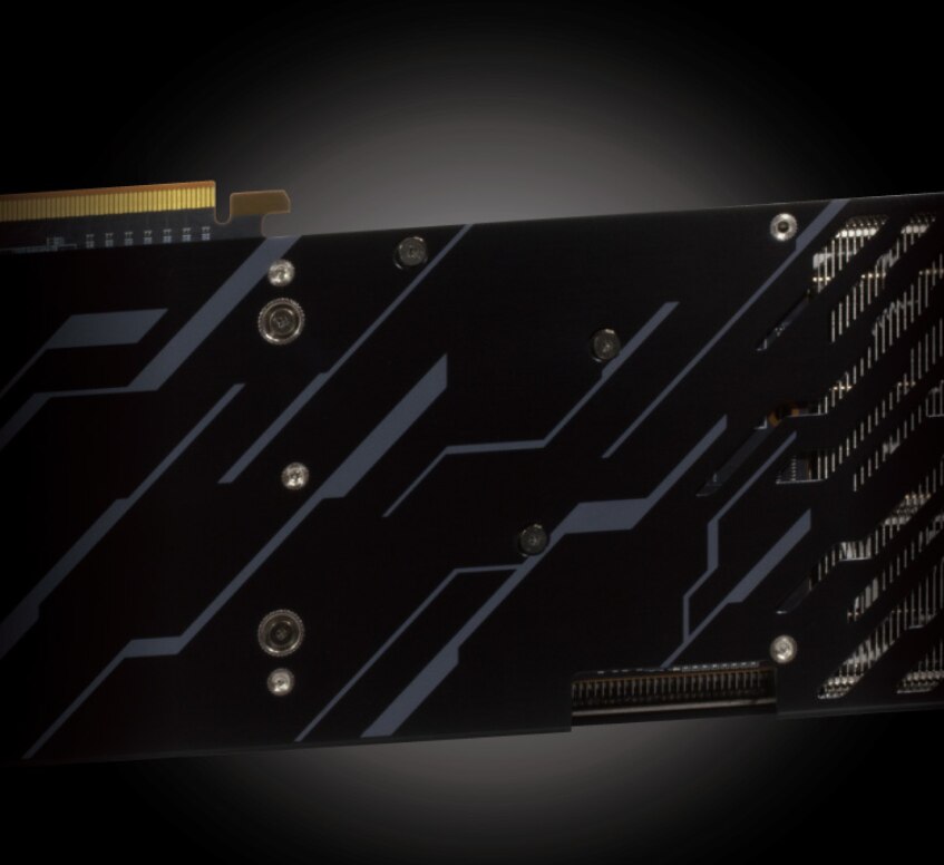 Placa din spate metalica este extrem de rigida pentru a intari cardul pentru a preveni indoirea PCB, iar zona goala permite degajarea de caldura cu promptitudine pentru a spori fluxul de aer.